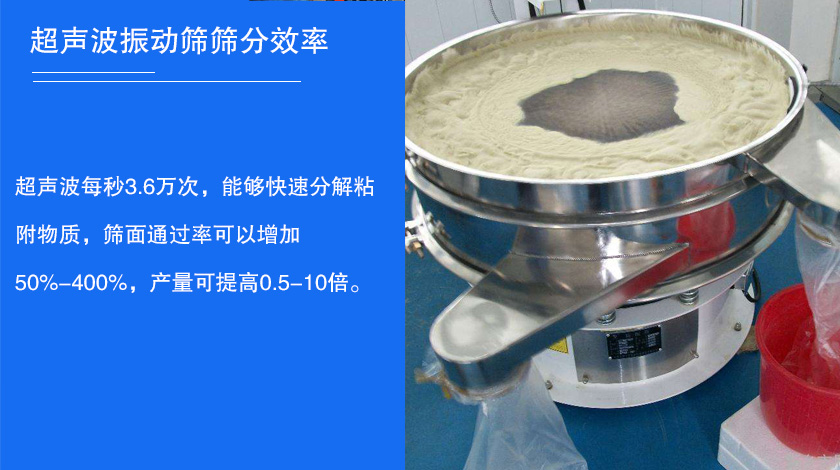 超聲波振動(dòng)篩超聲波振動(dòng)篩每秒3.6萬(wàn)次,能夠快速分解粘附物質(zhì),篩面通過率可以增加50%-400%,產(chǎn)量可提高0.5-10倍。