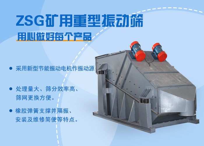 zsg礦用重型振動(dòng)篩是大漢機(jī)械專為大產(chǎn)量篩分需求的用戶自行研制的一種新型、高效的篩分設(shè)備,主要用于冶金、礦山、煤炭、建材、電力、化工等行業(yè),該機(jī)采用新型能耗低振動(dòng)電機(jī)或激振器作振動(dòng)源,橡膠彈簧支撐并隔振,具有處理量大、篩分效率高、篩網(wǎng)更換方便、安裝及維修簡便等特點(diǎn)。