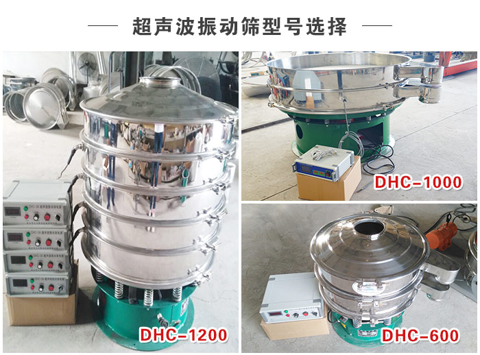 【型號選擇】—— DHC系列超聲波振動篩型號有:DHC-400、DHC-600、DHC-800、DHC-1000、DHC-1200、DHC-1500、DHC-1800、DHC-2000等八種標(biāo)準(zhǔn)直徑型號,可滿足用戶完成每小時500KG—3000KG的大中小產(chǎn)量篩分。