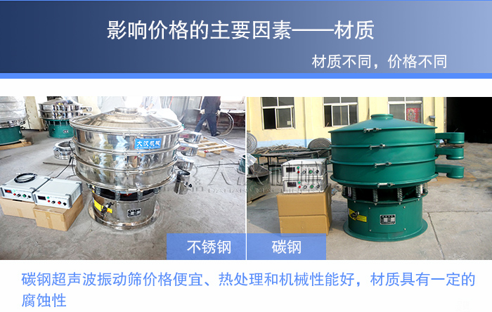 超聲波振動篩的材質選擇主要是根據(jù)物料,不同的物料特選擇的材質就是不同。不銹鋼材質比碳鋼材質要貴。