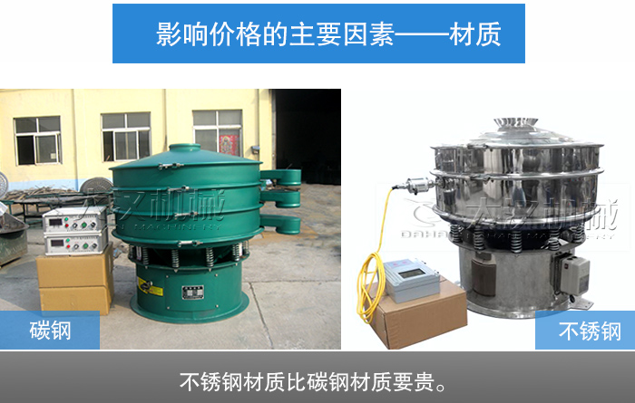 超聲波振動篩的材質(zhì)選擇主要是根據(jù)物料,不同的物料特選擇的材質(zhì)就是不同。不銹鋼材質(zhì)比碳鋼材質(zhì)要貴。