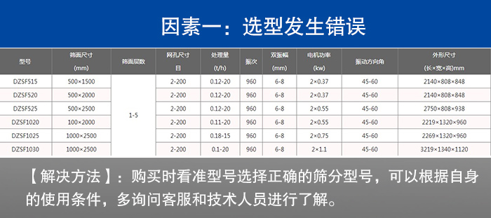 【解決方法】:購買時(shí)看準(zhǔn)型號選擇正確的篩分型號,可以根據(jù)自身的使用條件,多詢問客服和技術(shù)人員進(jìn)行了解。