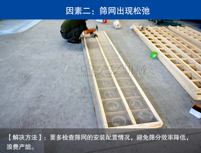 【解決方法】:要多檢查篩網(wǎng)的安裝配置情況,避免篩分效率降低,浪費(fèi)產(chǎn)能。