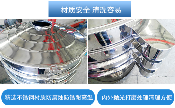 單層不銹鋼振動(dòng)篩采用不銹鋼材質(zhì)精制而成,具有良好的防腐蝕防銹功能,也可耐高溫,內(nèi)外拋光打磨處理,內(nèi)部無(wú)焊接點(diǎn),表面平整無(wú)凹陷或高低起伏的波浪面,無(wú)扭曲變形的現(xiàn)象,增加篩分后清洗消毒的難度。